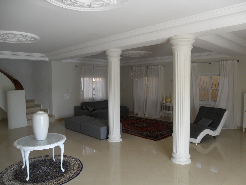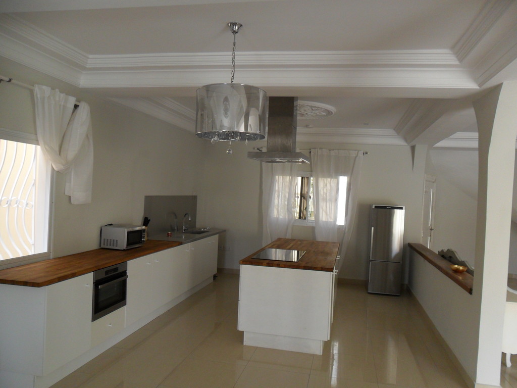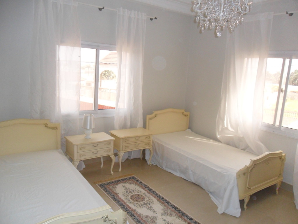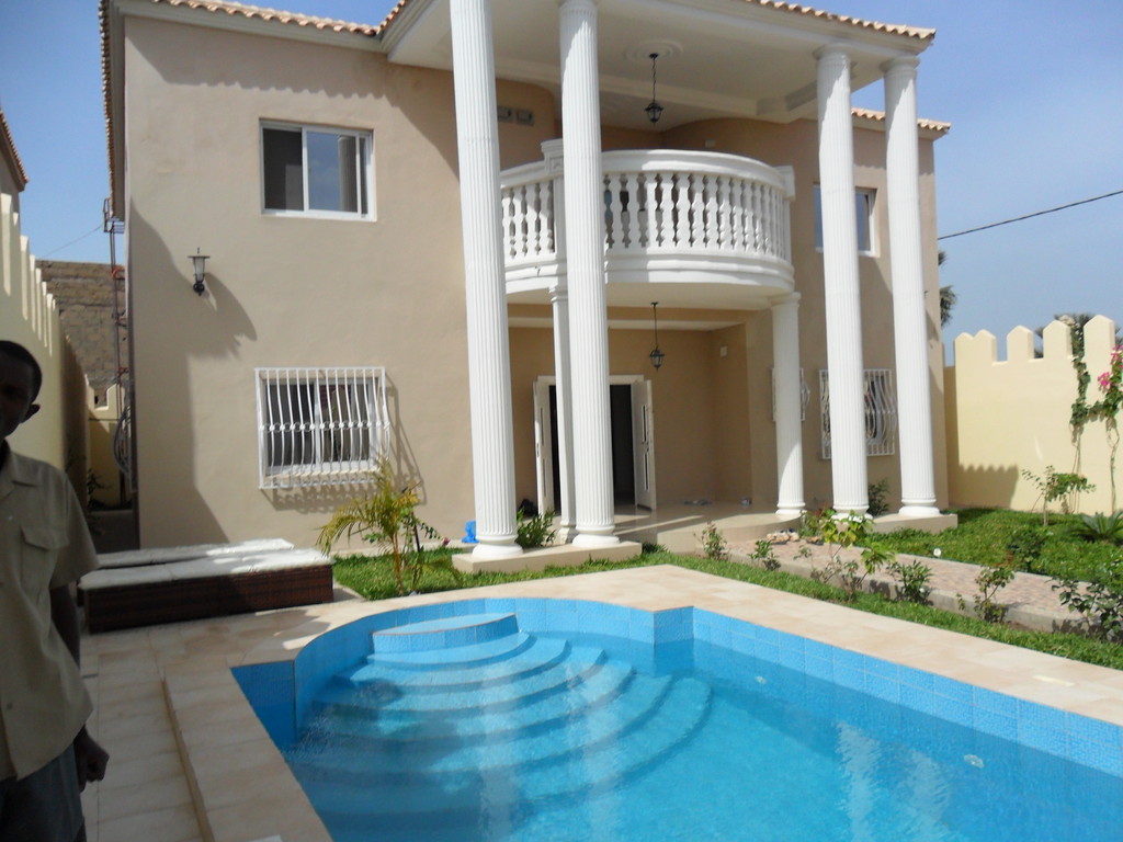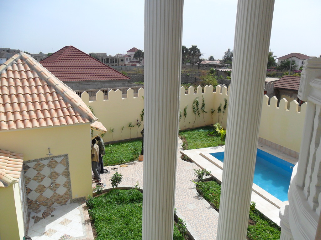 This luxury Villa is located in Tranquil right next to Brufut Heights, Gambias quiet residential area. It offers a spacious barrier free ground floor with living room, lounge, kitchen, dining area and a seperate WC. On the first floor it has three bedrooms (including an ensuite master bedroom) and one bathroom. The house is fully furnished with high quality European furniture including a first class modern kitchen.